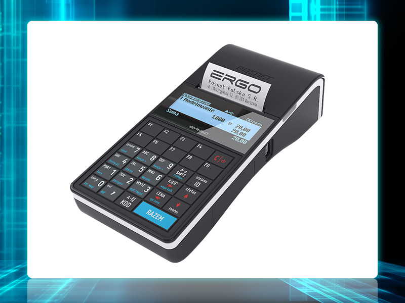 Małe kasy fiskalne podbijają dziś serca polskich przedsiębiorców. Nic więc dziwnego, że Posnet zdecydował się stworzyć kolejne urządzenie tego typu. Pomyli się jednak ten, kto oceni model Ergo jedynie na podstawie jego gabarytów i wagi. To elegancka i solidnie wykonana kasa, która zaoferuje nie tylko wysokie parametry użytkowe oraz wiele przydatnych opcji, ale także możliwość rozbudowywania swojej funkcjonalności w miarę rozwoju firmy.